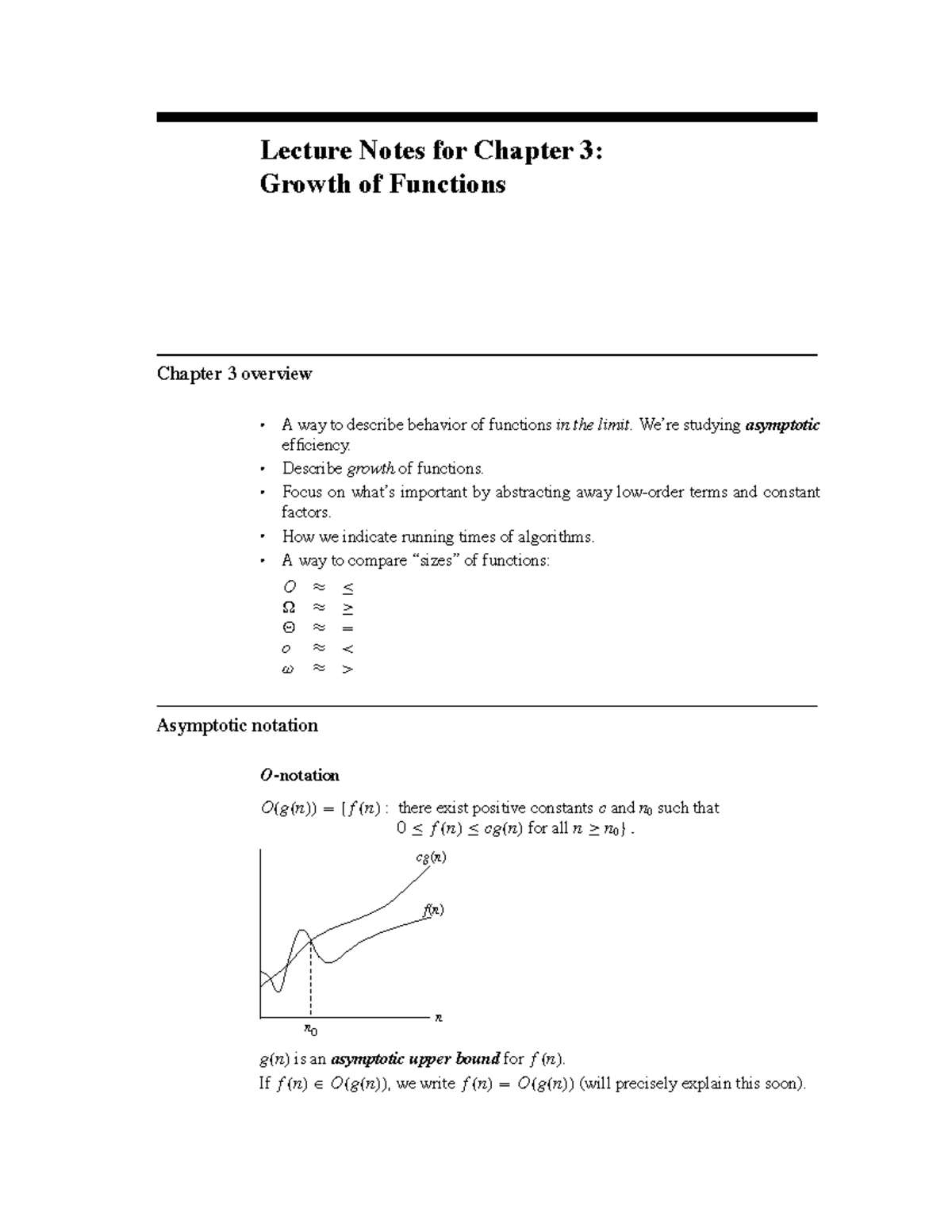 Lecture Notes for CS101: Growth of Functions Overview - Studocu