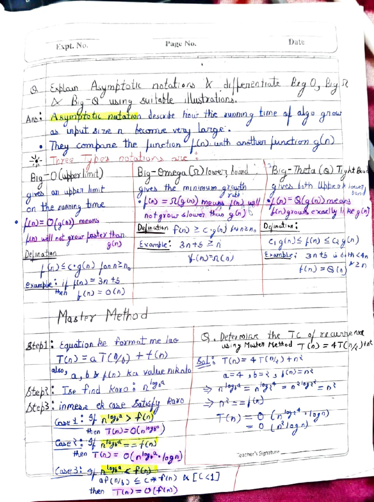 Asymptotic Notations and Algorithm Analysis (CS101 Lecture Notes) - Studocu