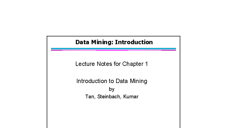 Data Mining (CS101): Lecture Notes for Chapter 1 Overview - Studocu