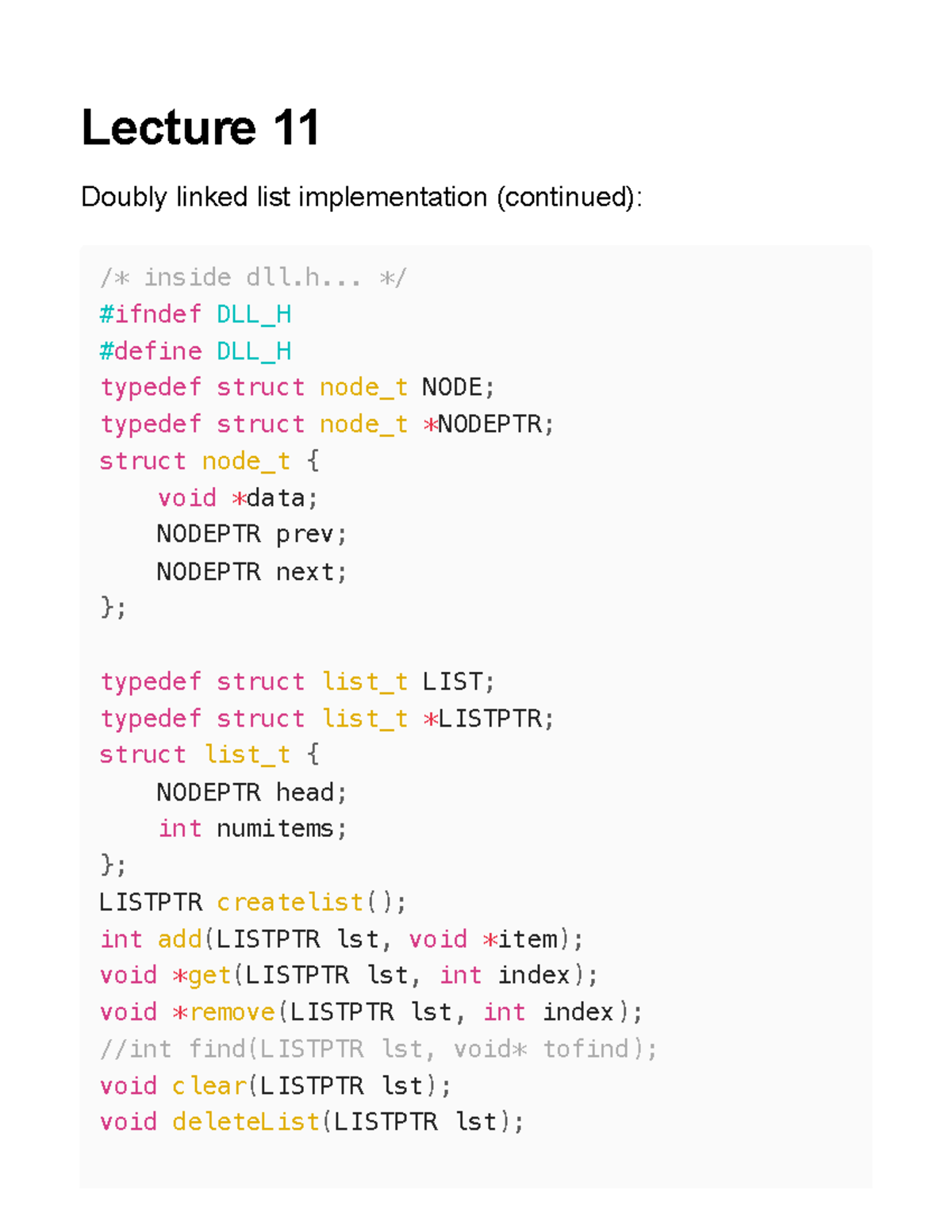 Lecture Notes on Doubly Linked List Implementation (CS101) - Studocu