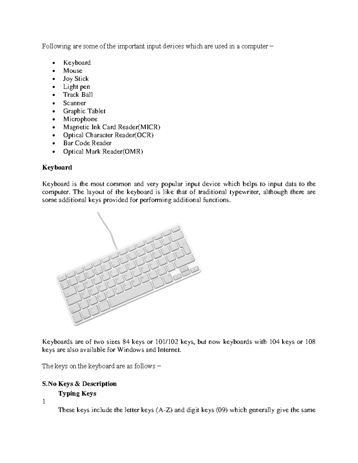 Input Devices Overview - Lecture Notes for CS101 - Studocu