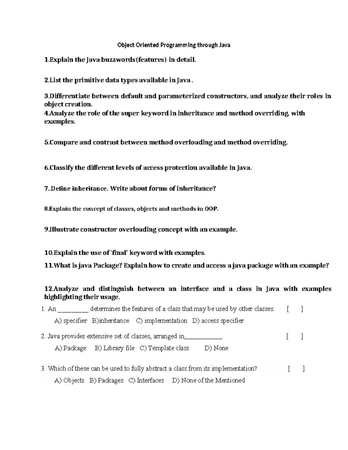 OOP Concepts and Java Features Explained - CS101 Lecture Notes - Studocu