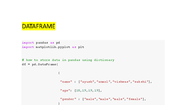 Pandas DataFrame Operations and Analysis Notes (CS101) - Studocu