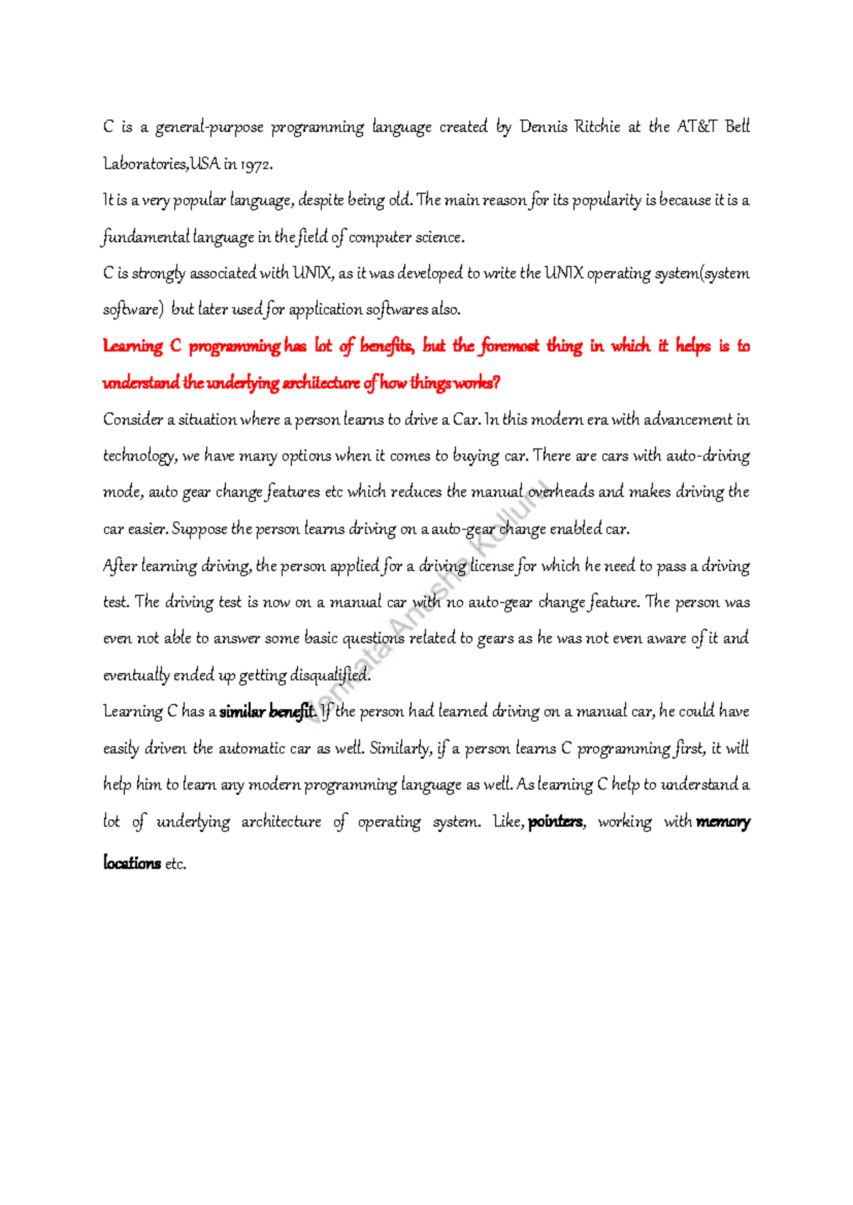 Introduction to C Programming - Lecture Notes (CS101) - Studocu