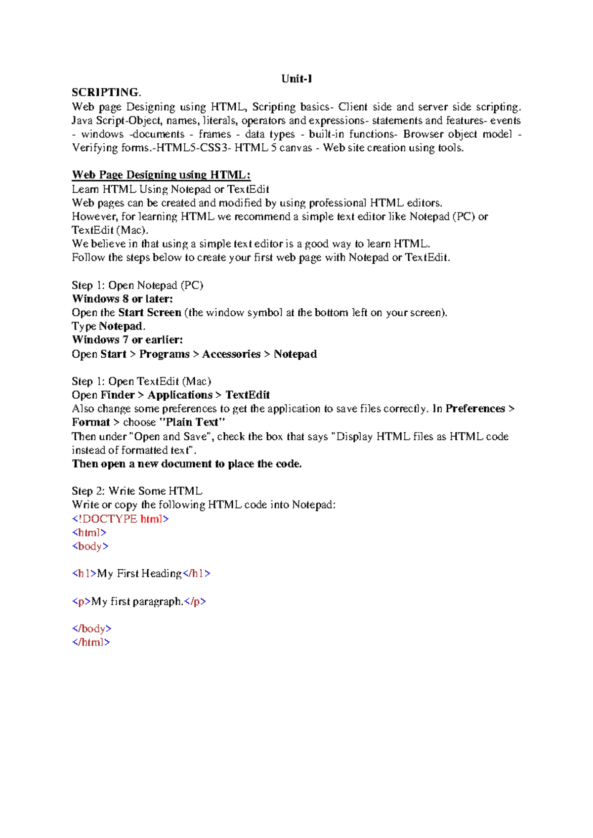 Unit-I: Web Page Designing & JavaScript Fundamentals (CS101 Notes ...