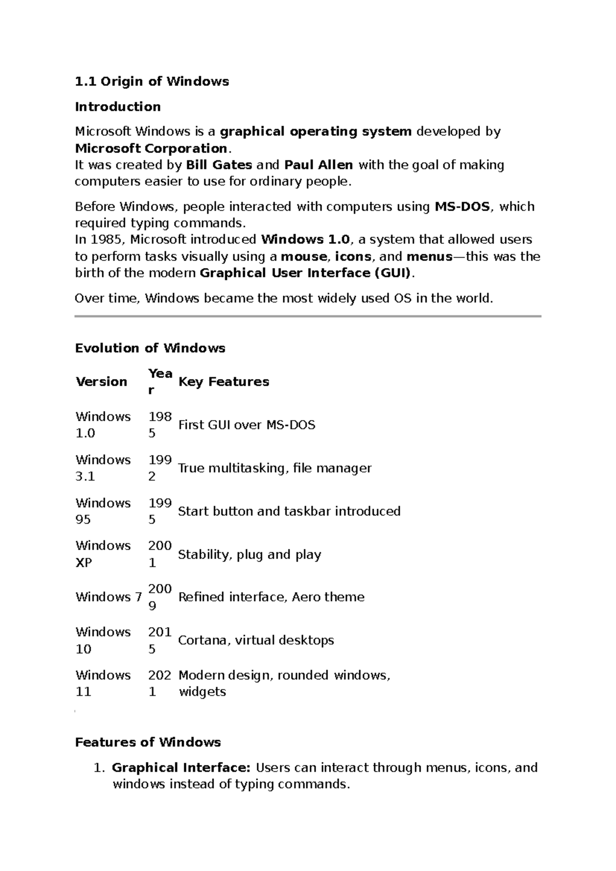 1.1 Origin and Features of Microsoft Windows (CS101 Lecture Notes ...