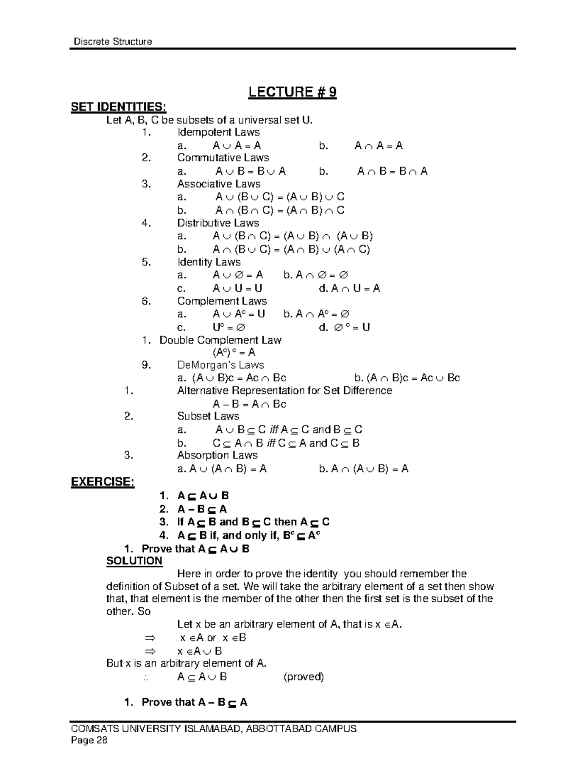 Discrete Structures Lecture Notes - Set Identities (CS101) - Studocu