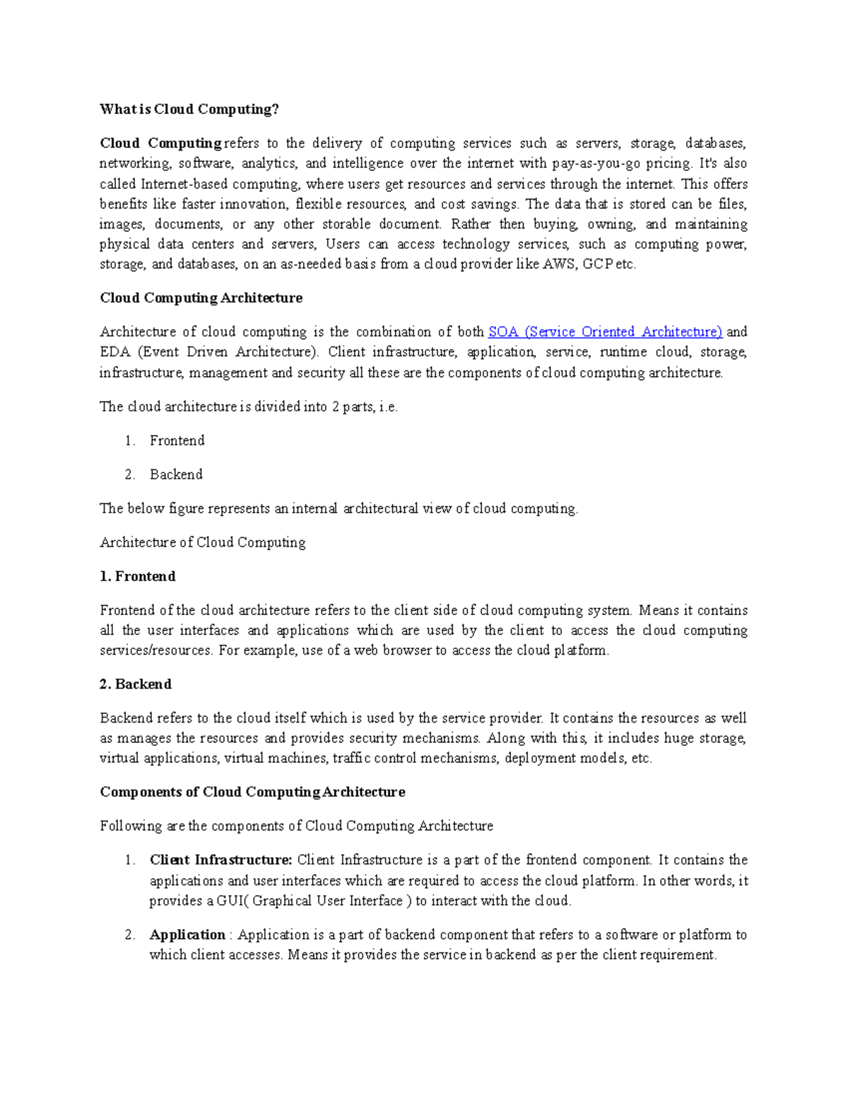 Cloud Computing Architecture Overview - CS101 Lecture Notes - Studocu