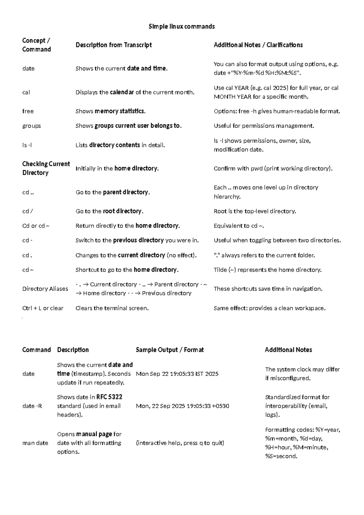 Simple Linux Commands Overview - CS101 Lecture Notes - Studocu