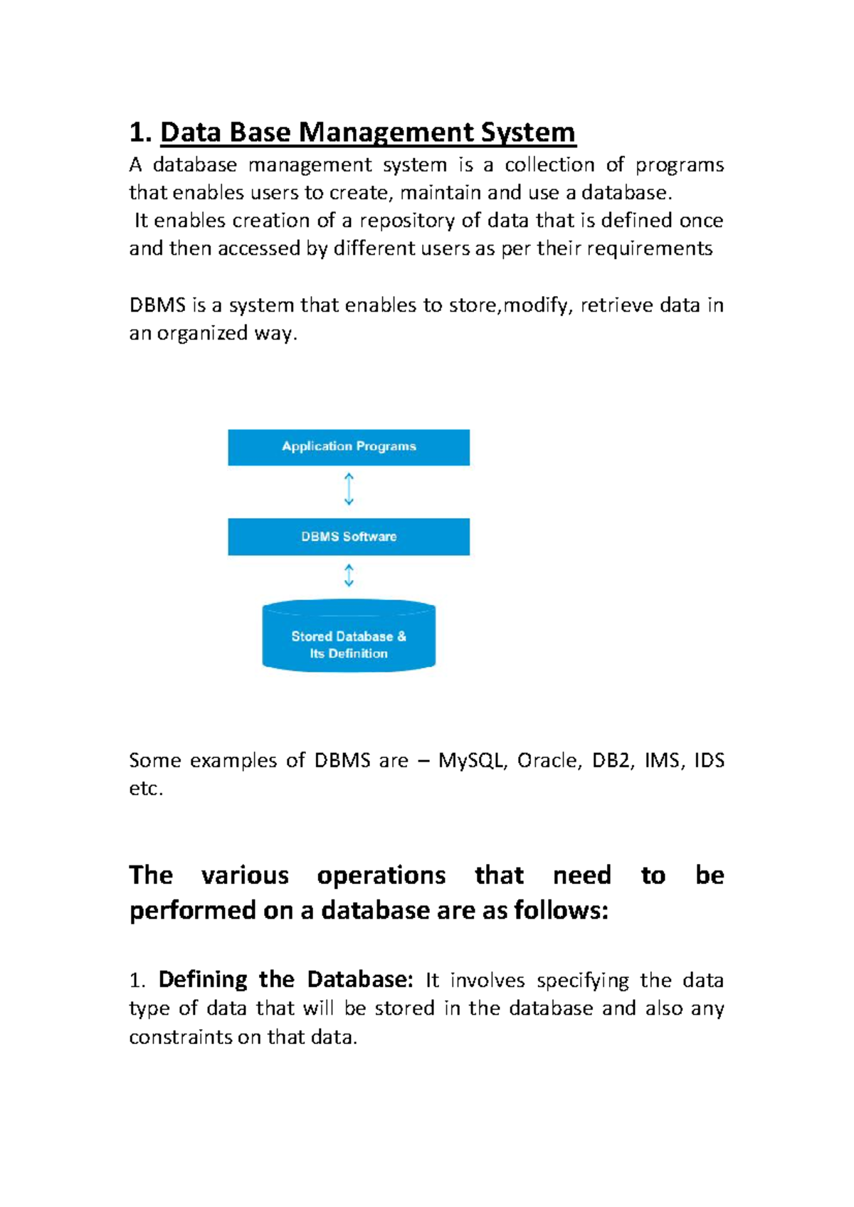 DBMS & Relational Database Concepts - CS101 Lecture Notes - Studocu