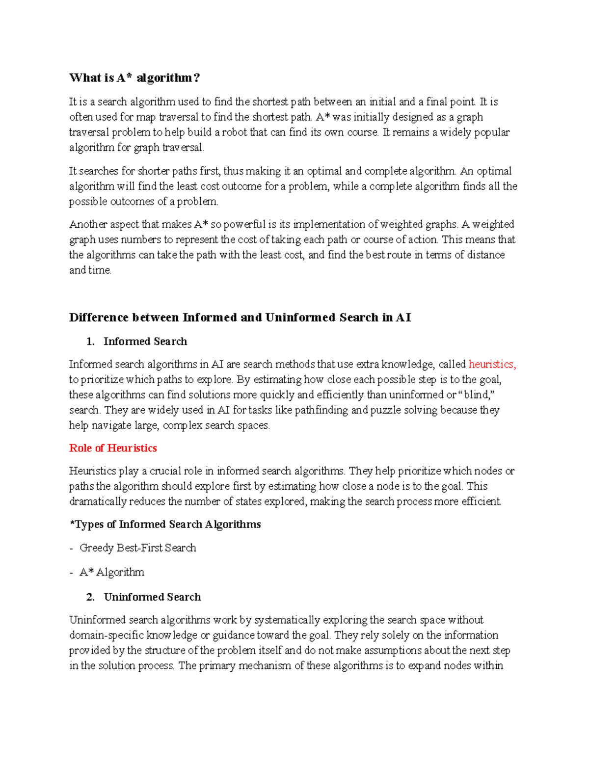 A* Search Algorithm Overview - CS101 Lecture Notes - Studocu
