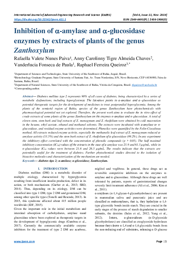(PDF) Inhibition of α-amylase and α-glucosidase enzymes by extracts of ...
