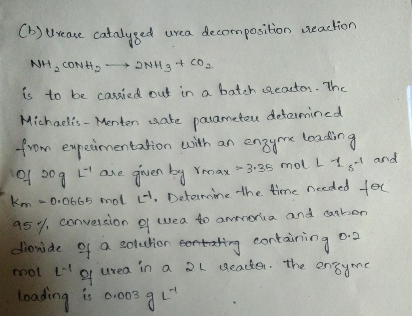 Solved (b) Urease catalysed ged urea decomposition reaction | Chegg.com