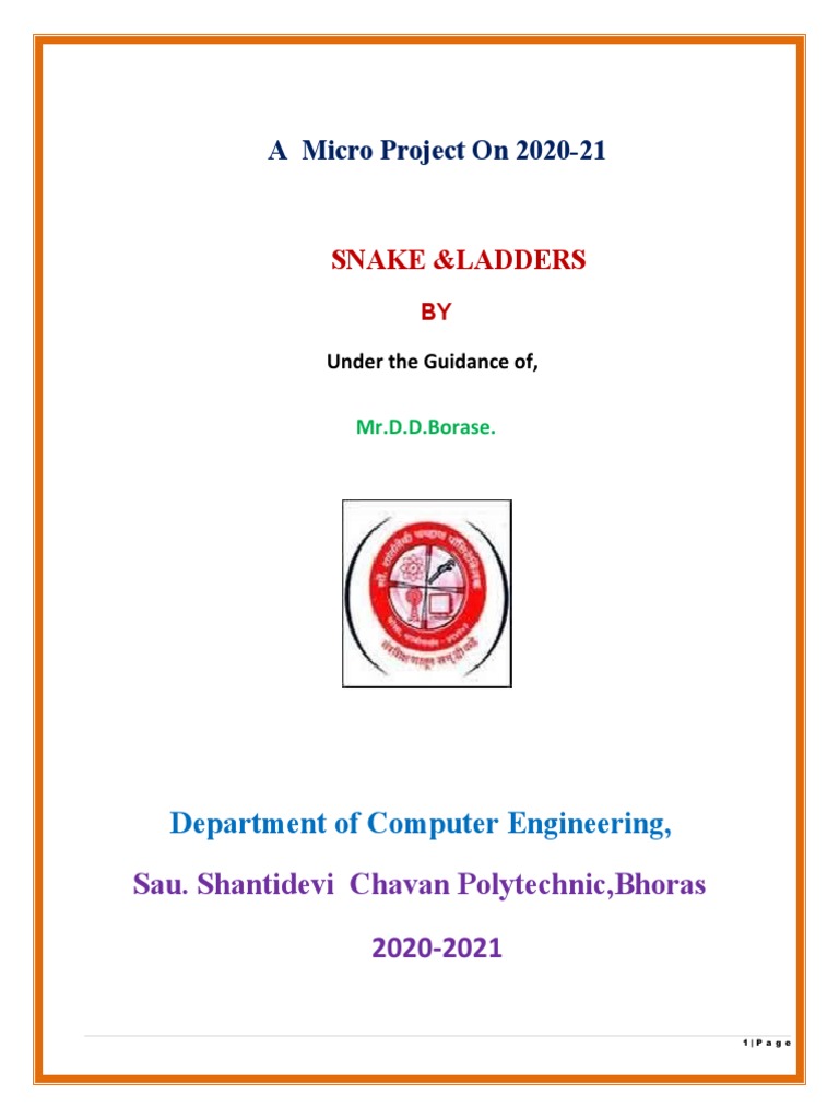 A Micro Project On 2020-21: Snake &ladders | PDF | Computer ...