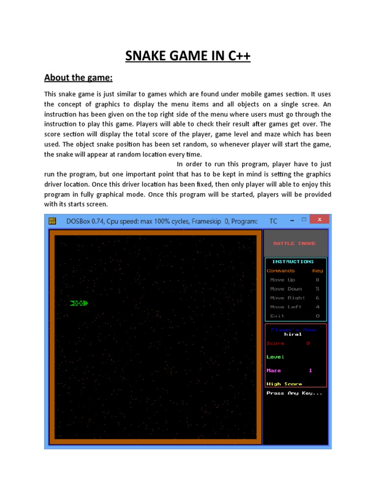 C++ Snake Game Instructions & Features | PDF | Games & Activities ...