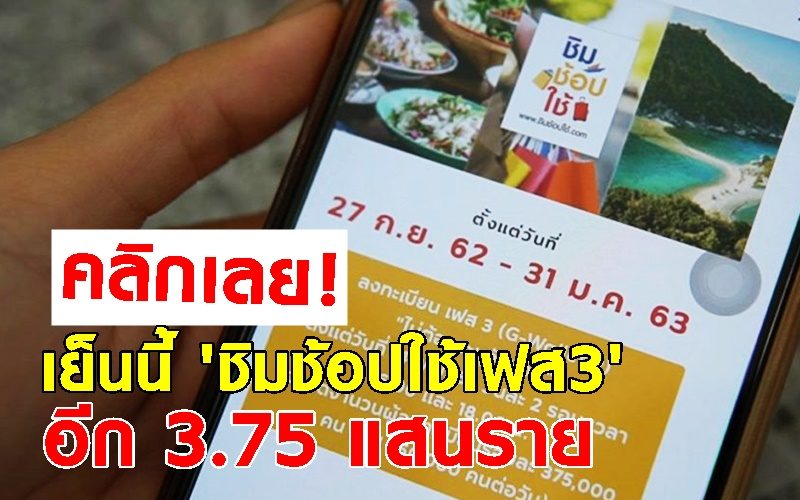 คลิกเลย! ชิมช้อปใช้เฟส 3 ลงทะเบียนรอบ18.00 น.แจกสิทธิอีก 3.75 แสนราย