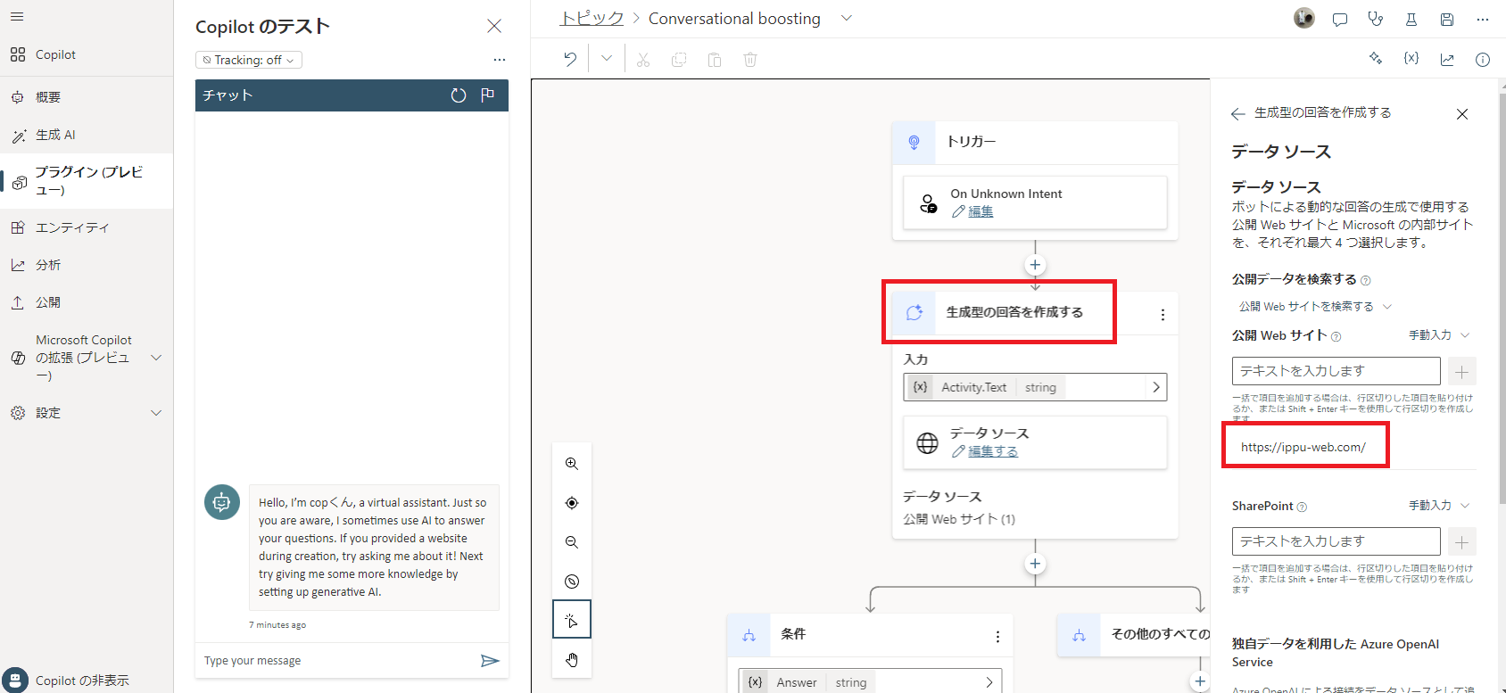 Copilot Studio 最初の設定とWebページから回答を生成する方法|日本環境で生成AIを使用する手順も