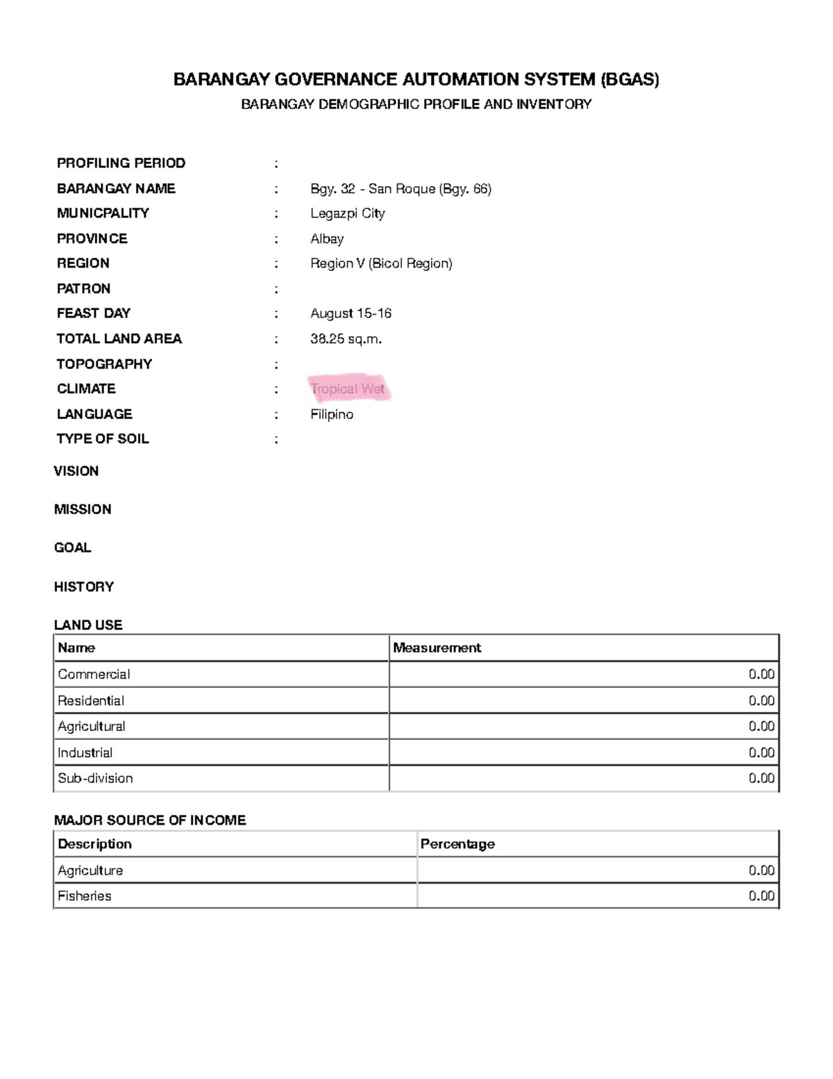 Barangay Demographic Profile & Inventory: Bgy. 32 San Roque (BGAS ...