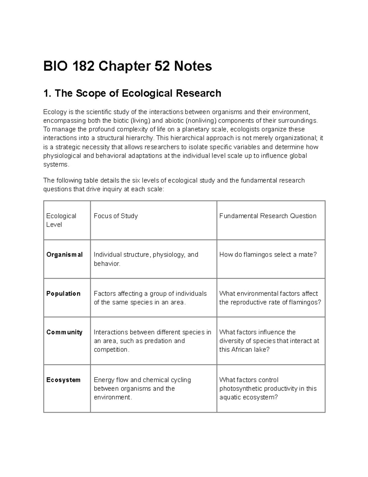 BIO 182 Chapter 52: Ecological Research and Climate Patterns - Studocu
