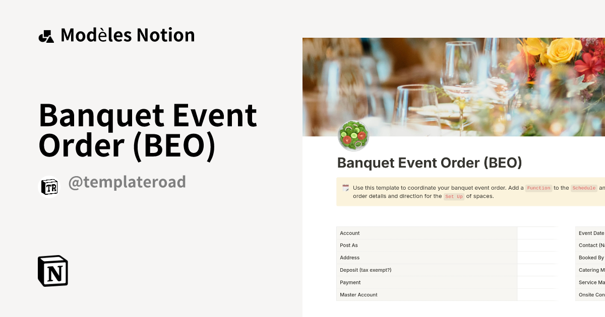 Modèle Banquet Event Order (BEO) | Marketplace Notion