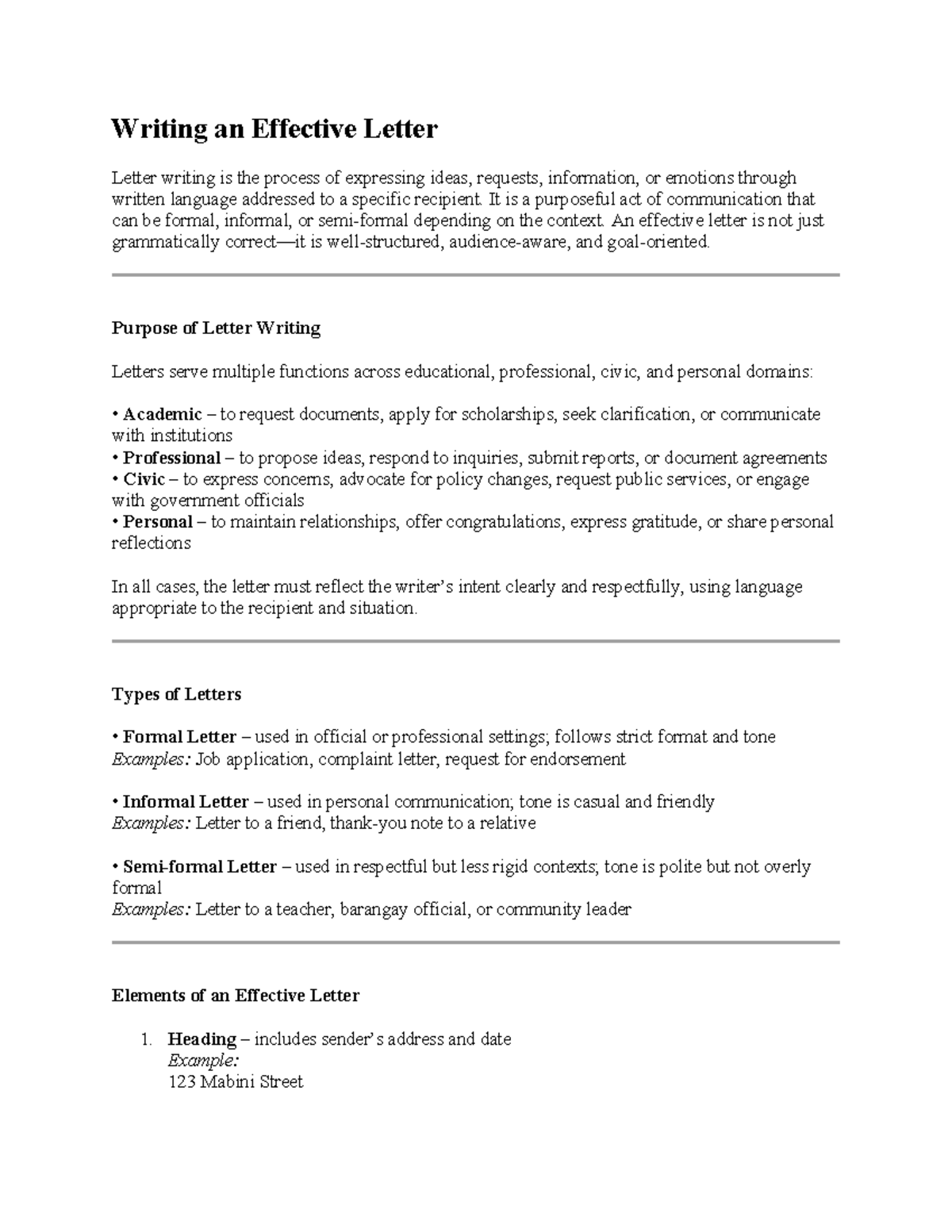 Effective Letter Writing: Tips and Techniques for Success - Studocu