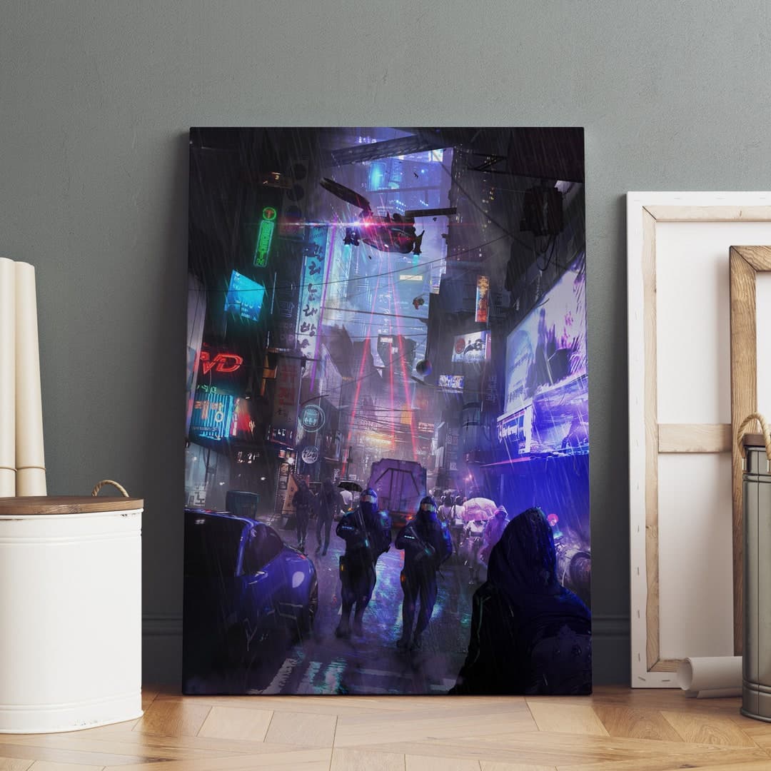 Cyberpunk Neon City Poster, Neo Futuristic Wall Art, Premium Canvas ...