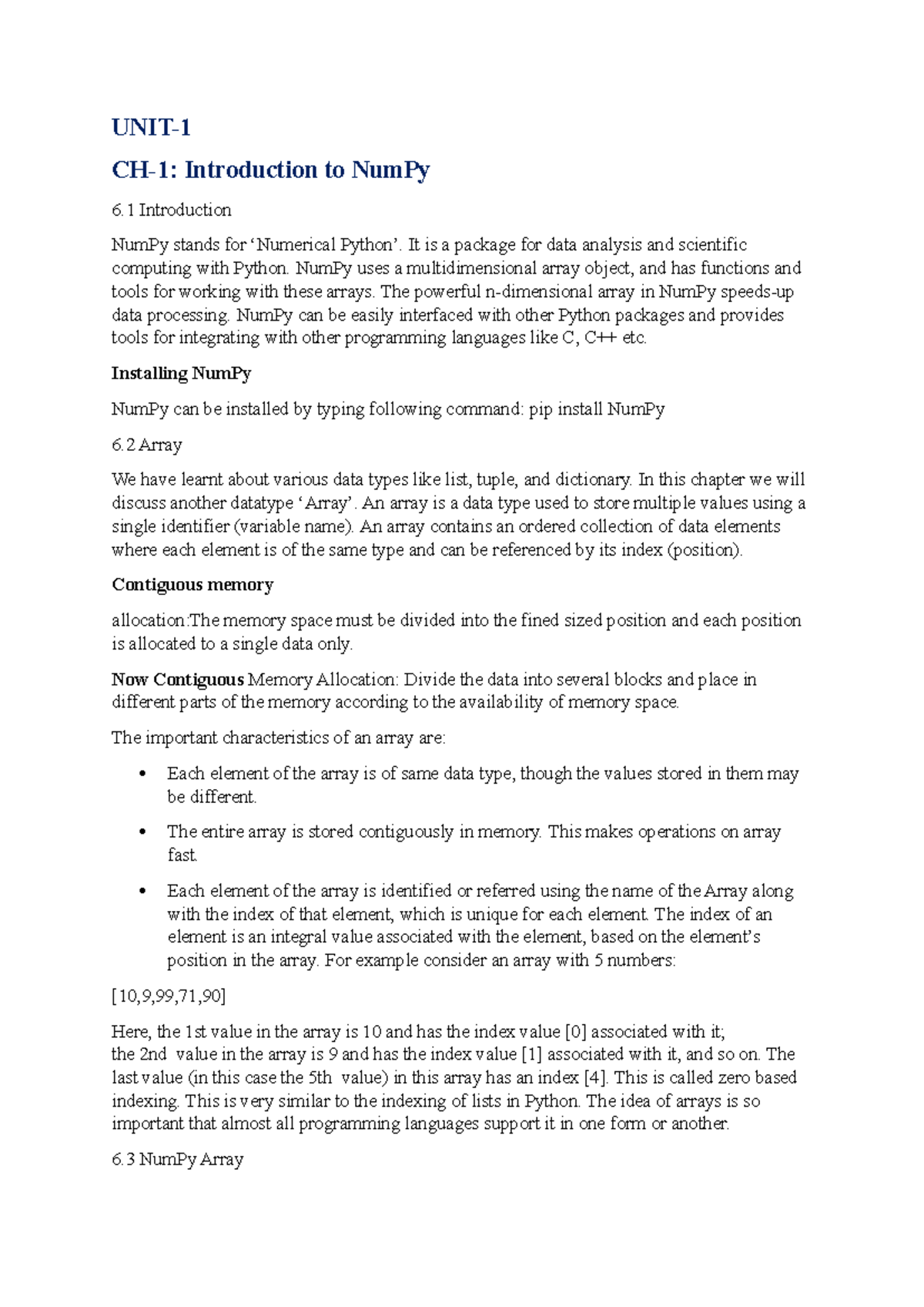 Numpy notes in python - UNIT- CH-1: Introduction to NumPy 6 ...