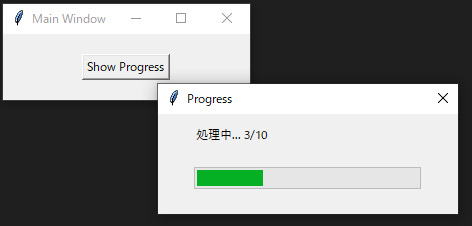 tkでプログレスバーのダイアログを表示する | 怠惰なエンジニアのぶろぐ