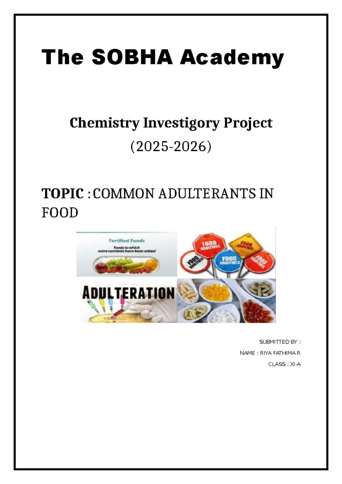Chemistry Project: Common Adulterants in Food (Class XI) - Studocu