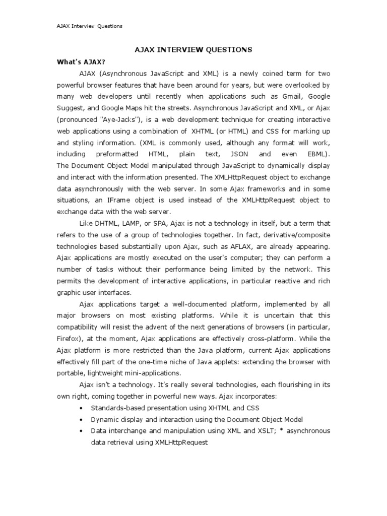 AJAX Interview Q&A Guide | PDF | Ajax (Programming) | Java Server Faces