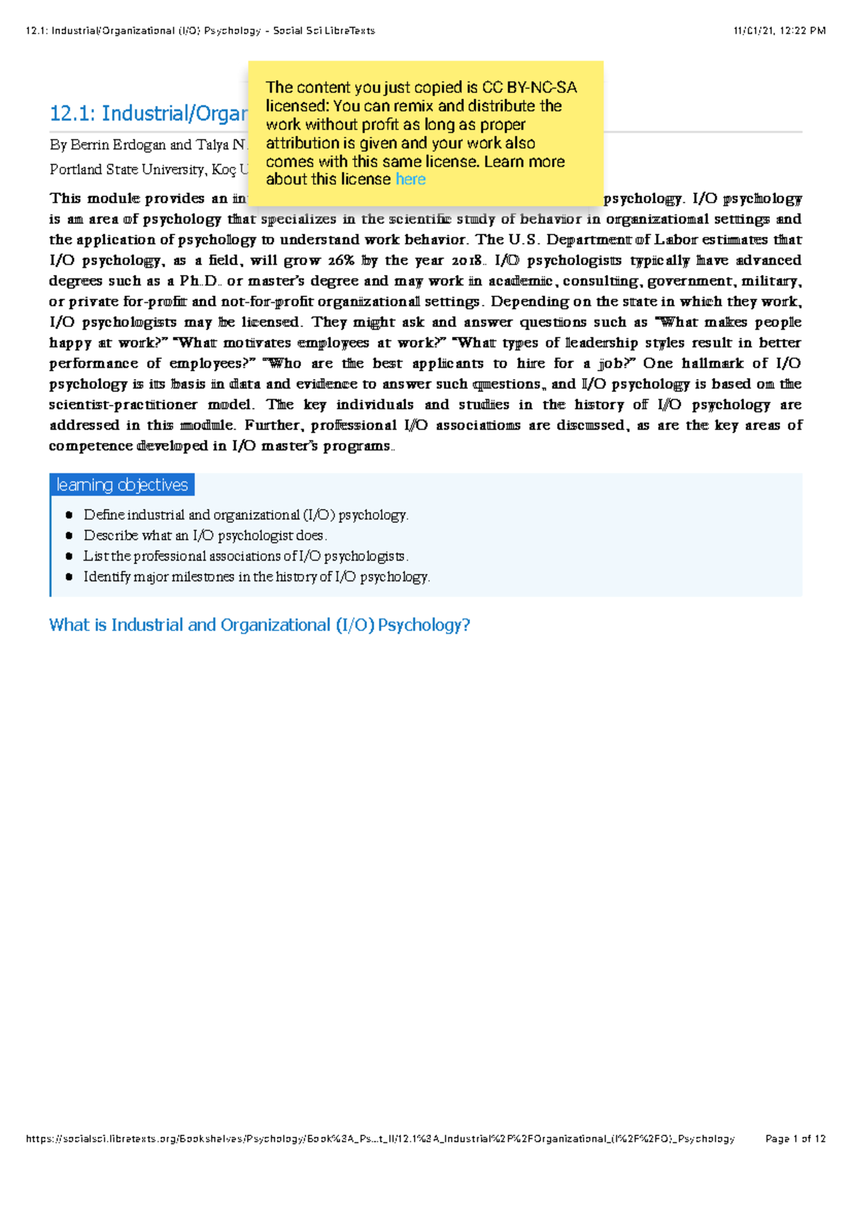 12.1: Introduction to Industrial and Organizational Psychology - Studocu