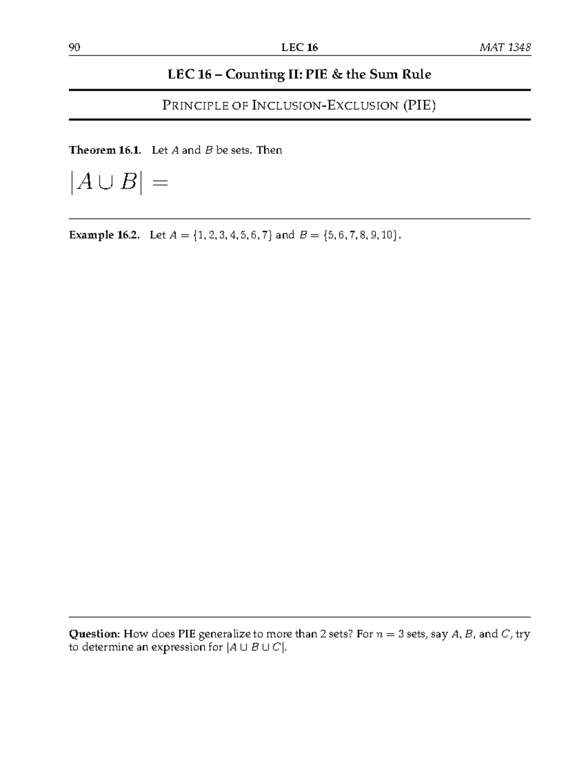 MAT 1348 Lecture 16 - wer - 90 LEC 16 MAT 1348 LEC 16 – Counting II ...