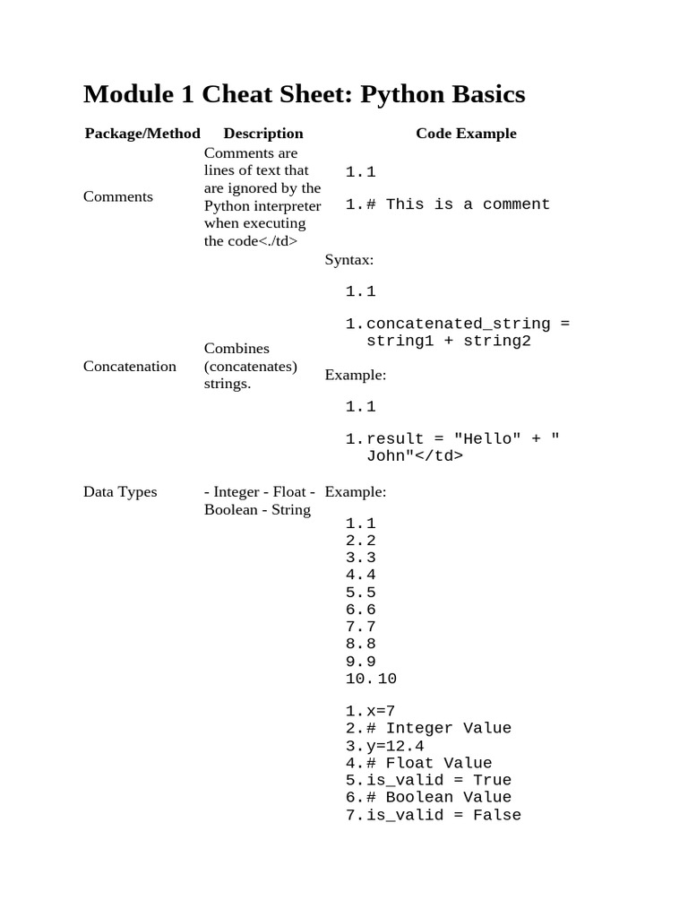 Module 1 Cheat Sheet PYTHON | PDF | Boolean Data Type | Computer ...