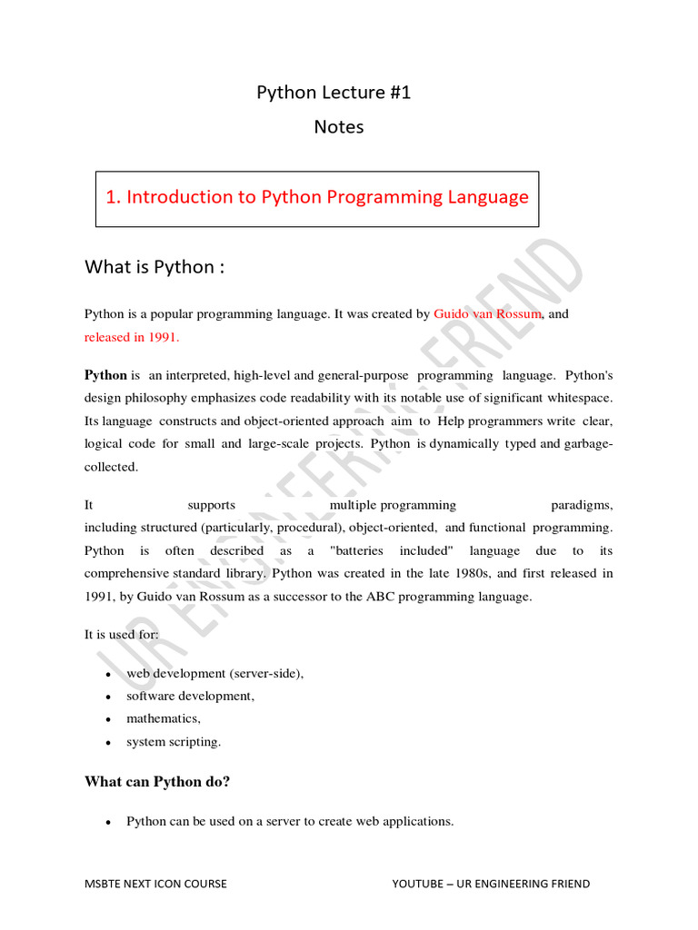 Python Chapter 1 Notes by Ur Engineering Friend | PDF | Python ...