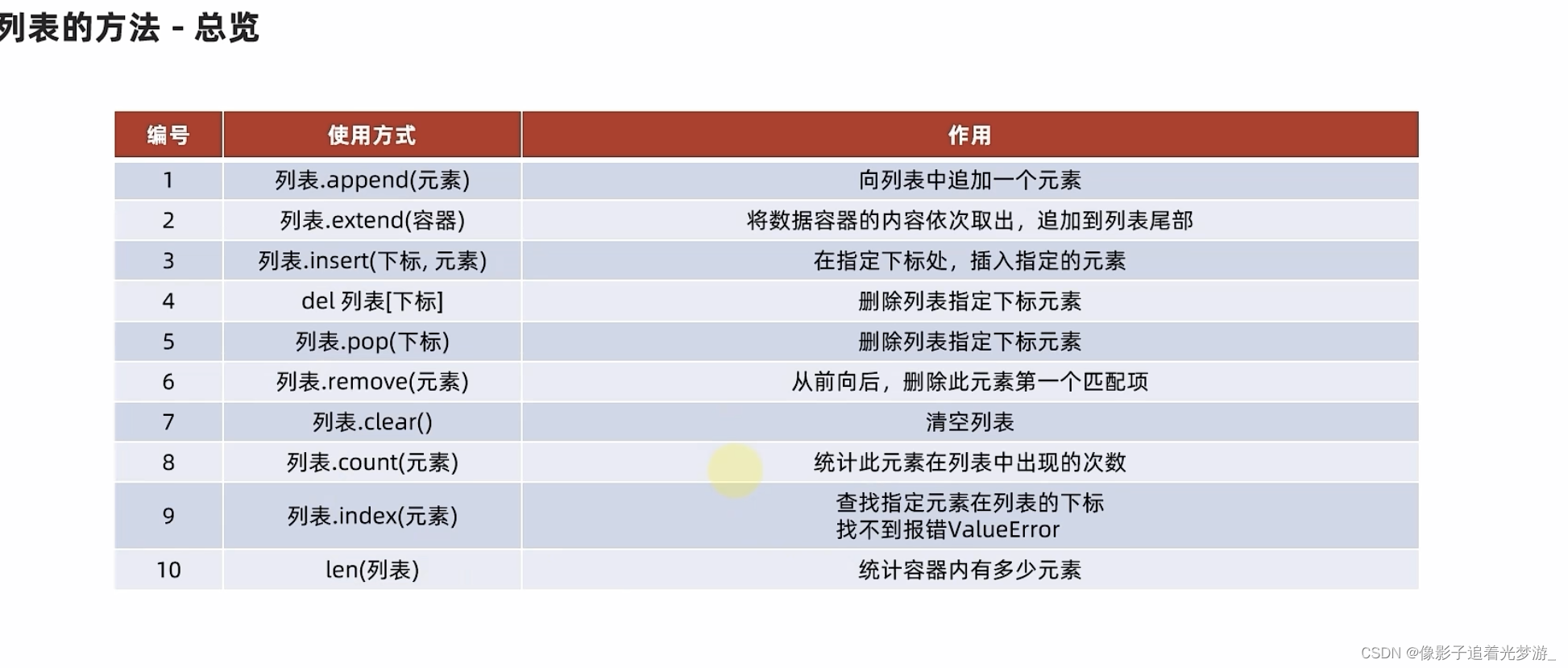 python学习笔记 list列表的常用操作(黑马程序员)_黑马程序员列表-CSDN博客