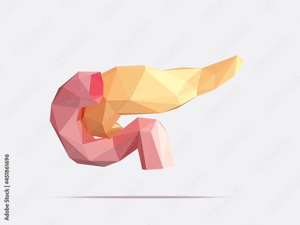 Vector illustration of human pancreas and duodenum with faceted low ...