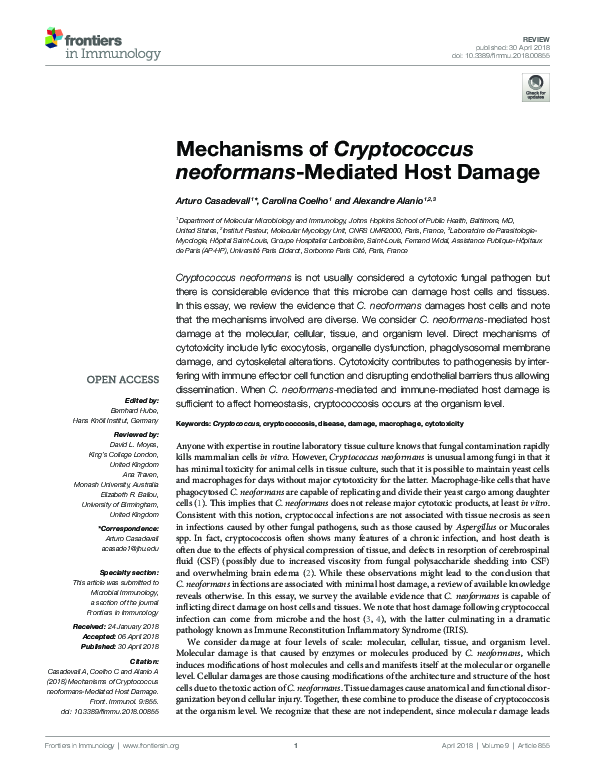 (PDF) Mechanisms of Cryptococcus neoformans-Mediated Host Damage