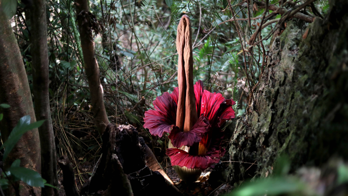 Rare rotting-flesh smelling flower blooming at a Massachusetts college ...