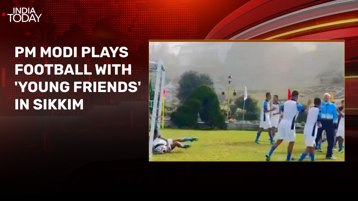 PM Modi plays football with youngsters in Gangtok, scores a goal
