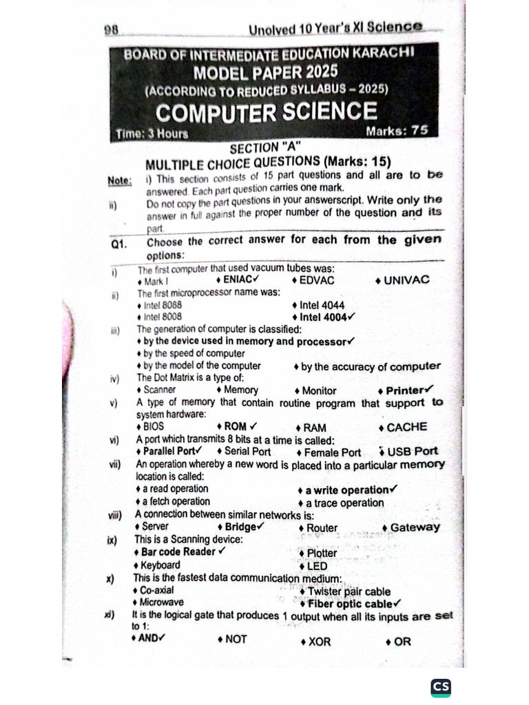 Unit 1 10th - 10th notes - COMPUTER SCIENCE 10TH MULTIPLE CHOICE ...