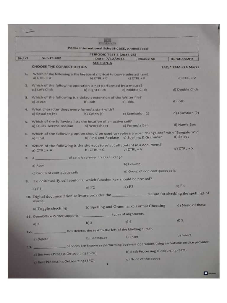 Test 3, Computer, Class 10th, Objective, Subjective, 2020 | PDF