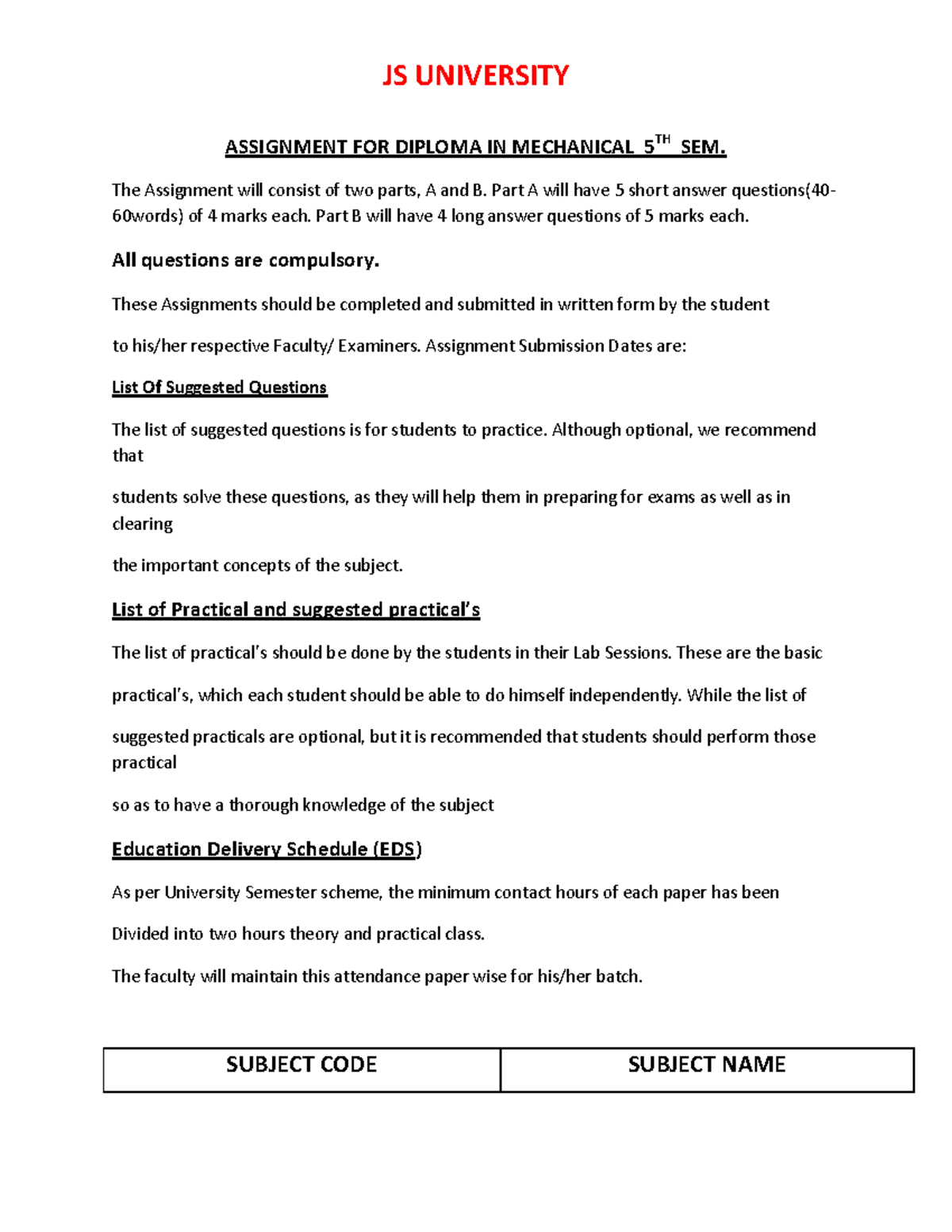 JS Diploma 5 SEM ASSI ME - ASSIGNMENT FOR DIPLOMA IN MECHANICAL 5 ...