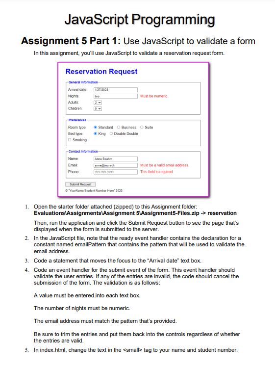 Solved Assignment 5 Part 1: Use JavaScript to validate a | Chegg.com
