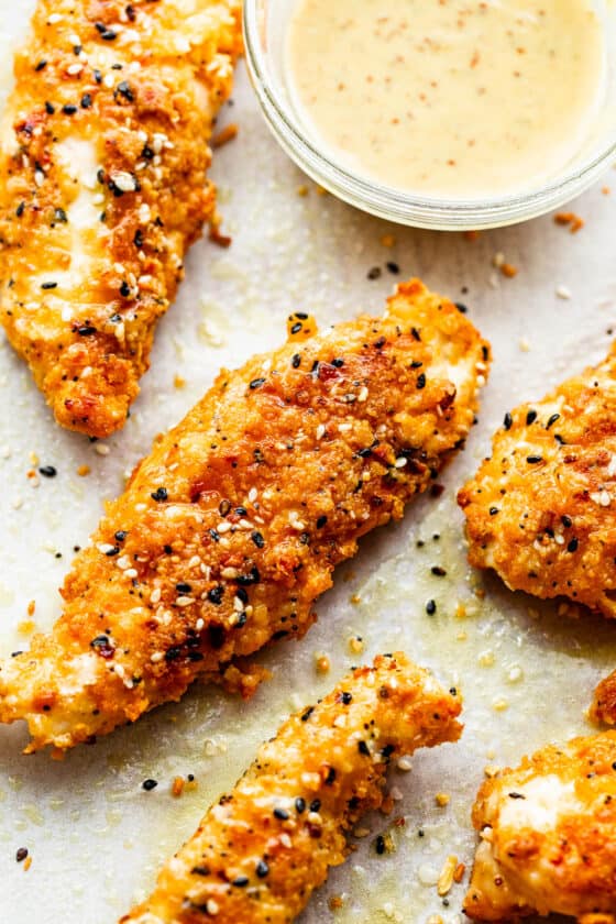 Crispy Everything Bagel Chicken Tenders (Baked!) - Averie Cooks