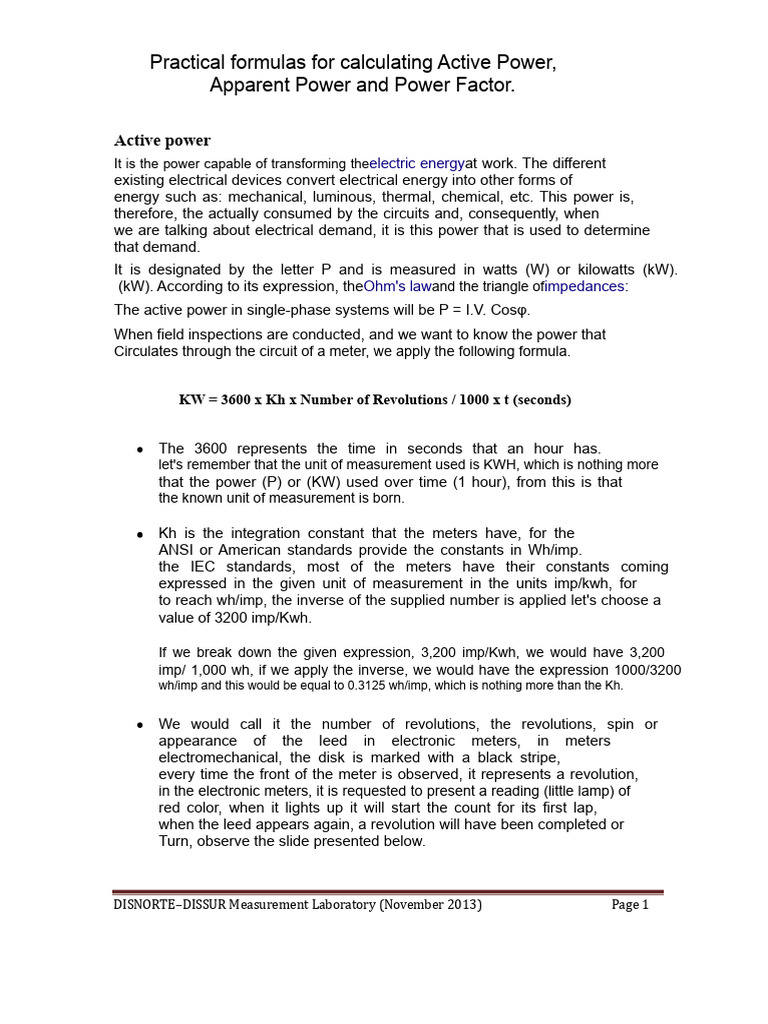Practical Formulas For Calculating Active Power | PDF | Ac Power ...