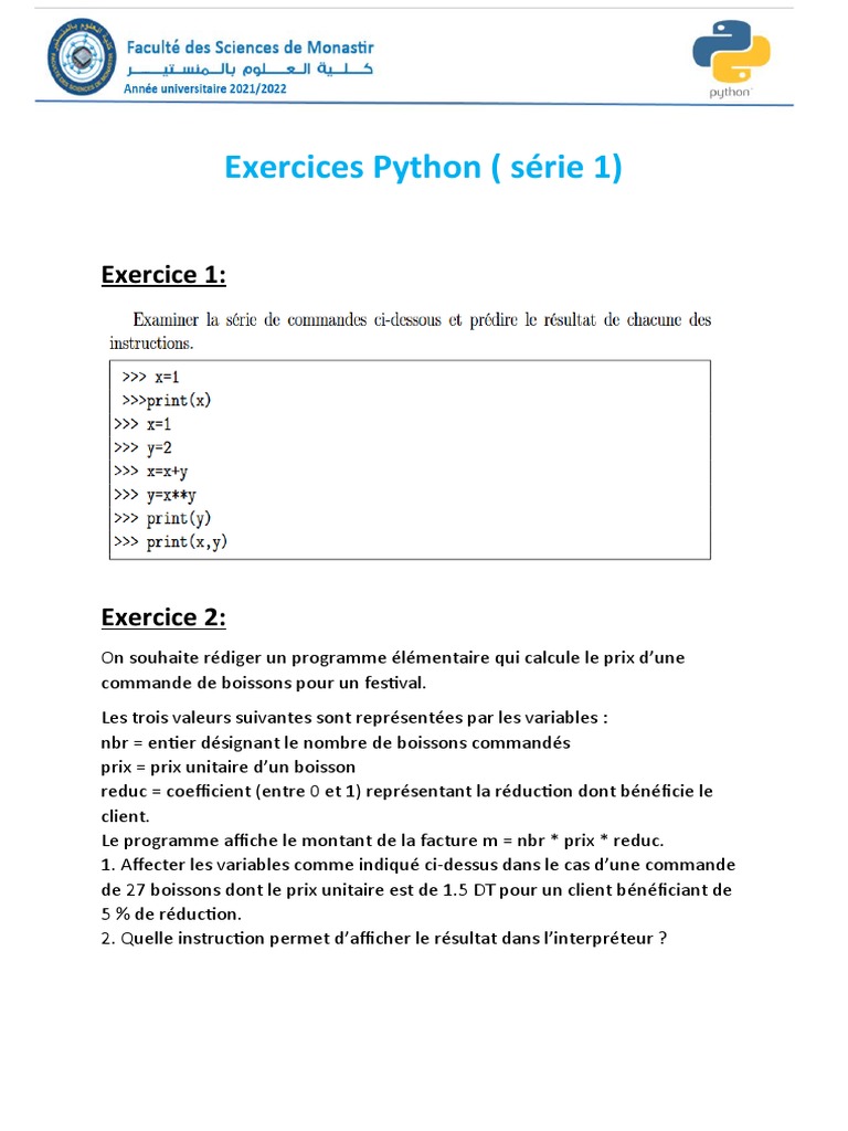 Exercices De Python Pdf _ Exercice Python Débutant Avec Corrigé – XFQS