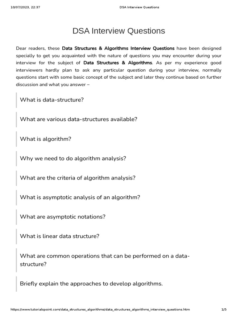 DSA Interview Questions | PDF | Discrete Mathematics | Algorithms And ...