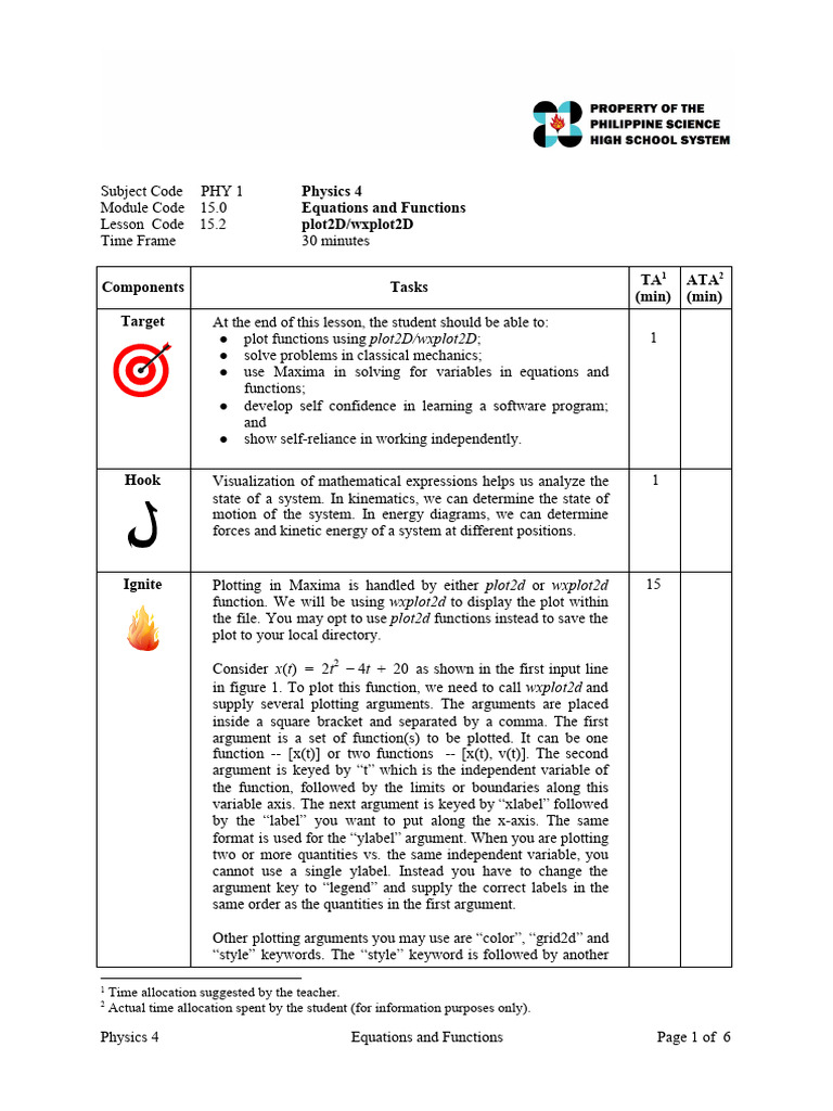 SLG Phy4 15.2 Plot2Dwxplot2D | PDF | Function (Mathematics) | Equations