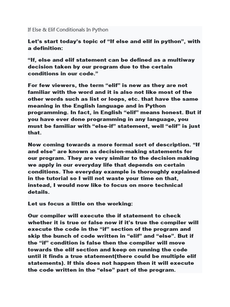 7.if Else & Elif Conditionals in Python | PDF | Mathematical Logic ...