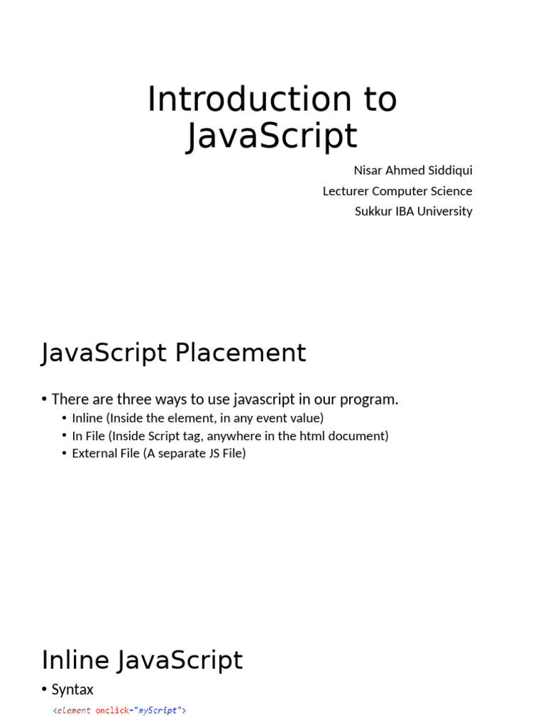 Javascript Introduction to Javascript.pdf - Introduction to Javascript ...